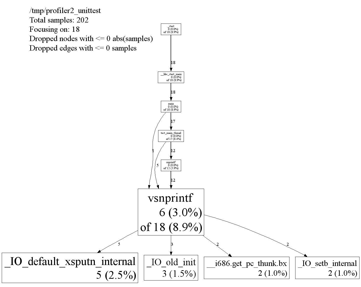 % pprof --gv --focus=vsnprintf /tmp/profiler2_unittest test.prof